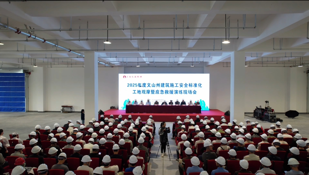 • 2025年度云南省文山州建筑施工質量安全標準化工地觀摩暨應急救援演練現場會在廣南縣新能源光伏組件標準化廠房及基礎配套設施建設項目隆重召開